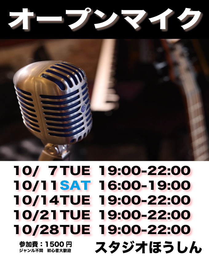 10月は以下の日程でオープンマイク開催予定です。